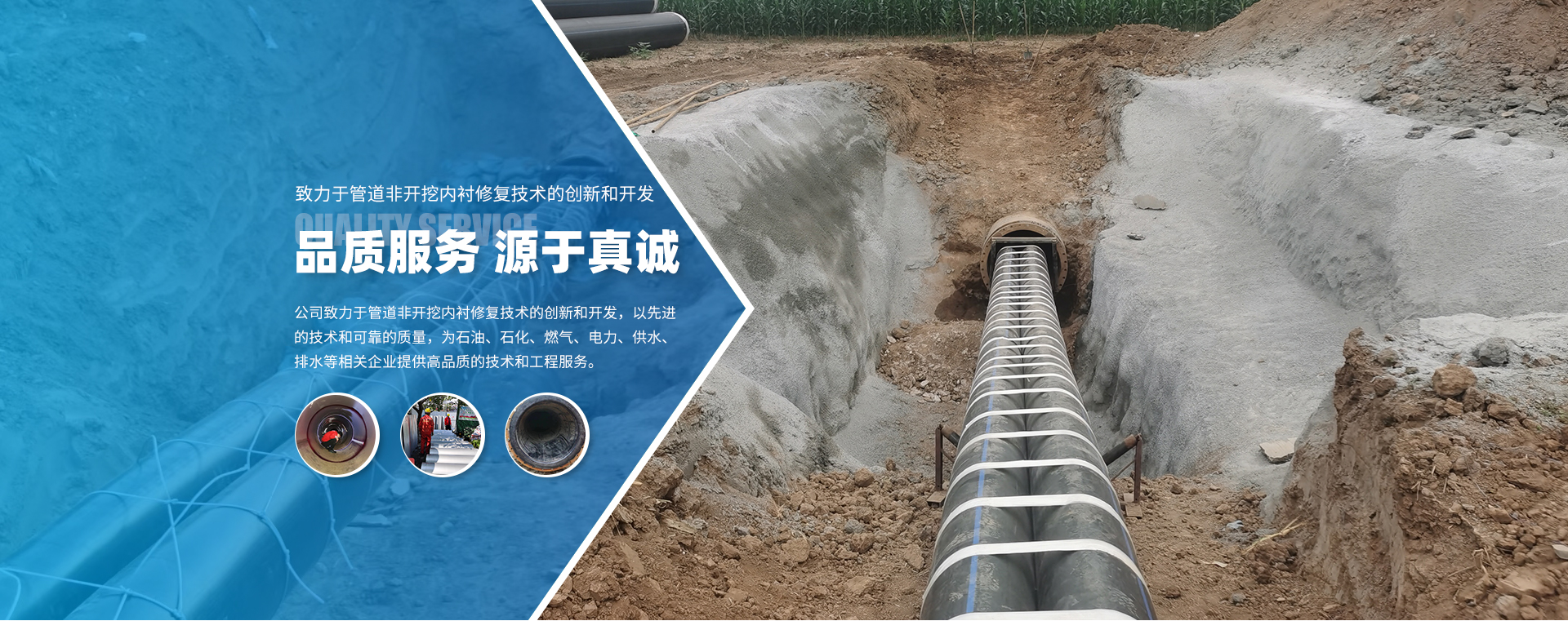 以安全、質量為第一,通過非開挖修復工藝延長管道使用壽命,讓舊管道再煥新生,為客戶提供優(yōu)質地下管網解決方案。